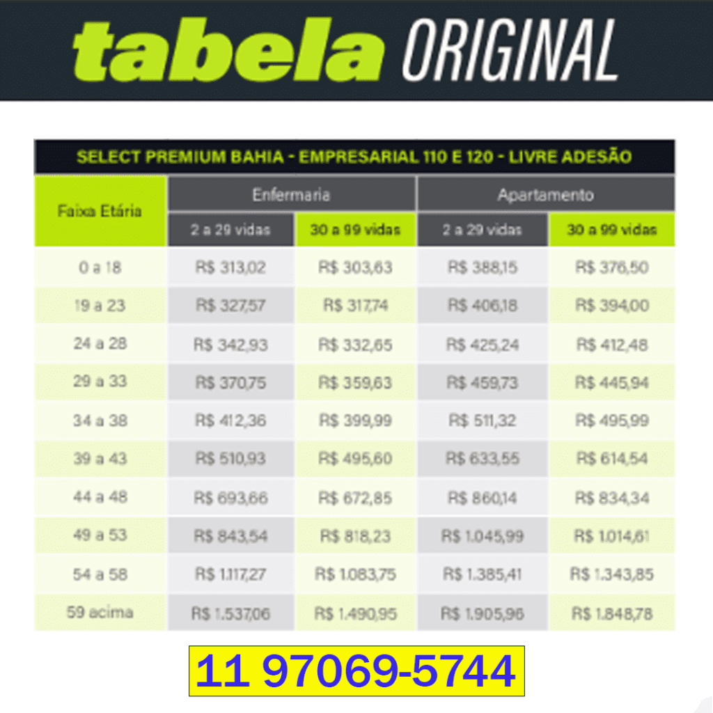- Tabela de Preço Plano de Saúde Select em São Paulo – SP custa a partir de R$ 279,75 reais.